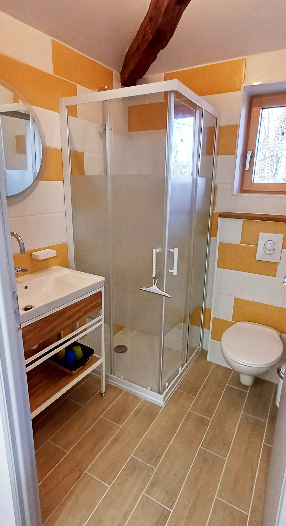 La salle d’eau se trouve en face de la chambre.
