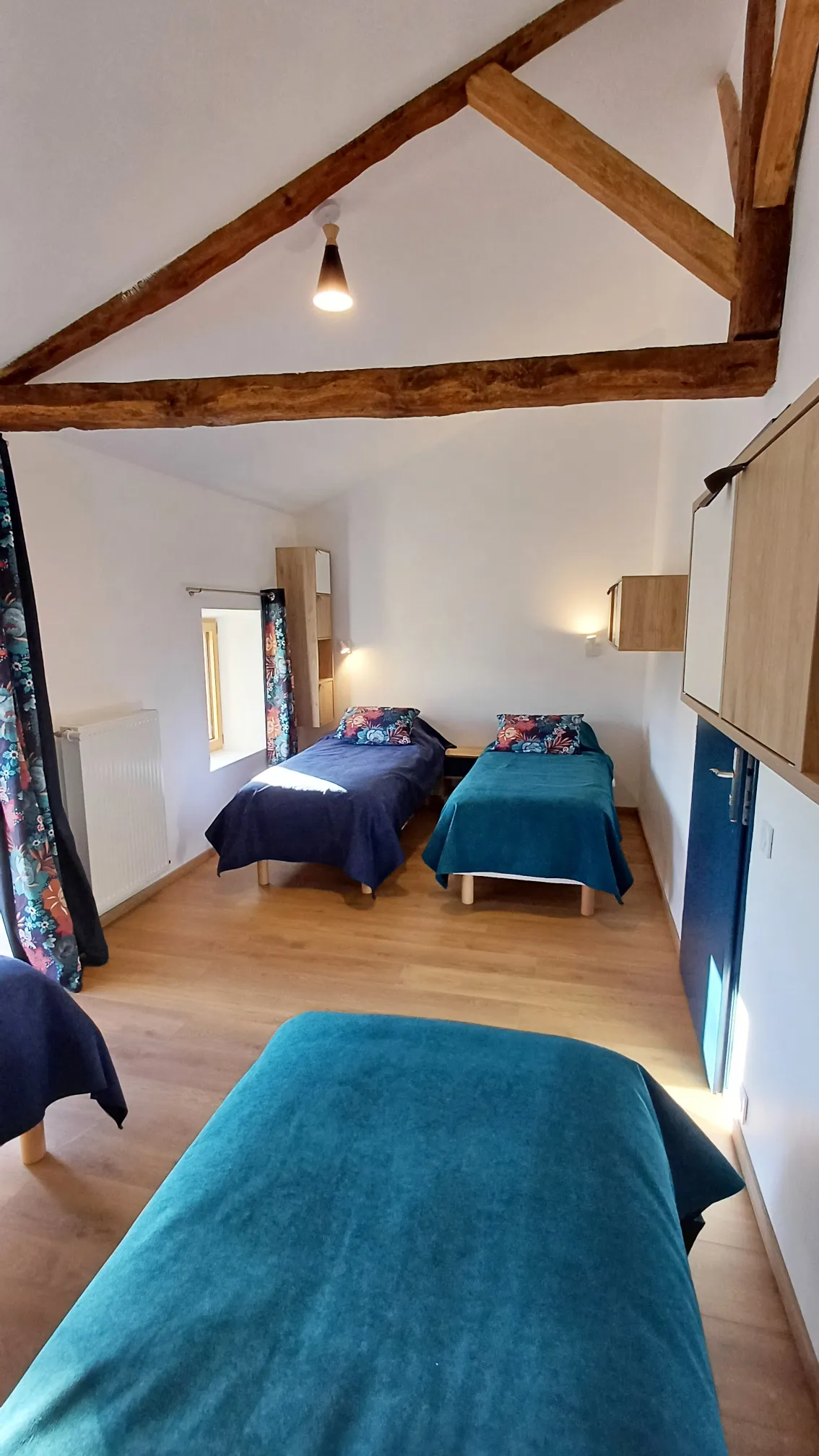 Située à l’étage, dans les tons bleu nuit, vert canard et aux motifs floraux, la chambre d’hôtes Harmonie est une chambre pour 1 à 4 personnes. Elle est une des deux chambres idéales pour une famille.