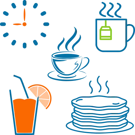 Viennoiseries, jus de fruits, boissons chaudes